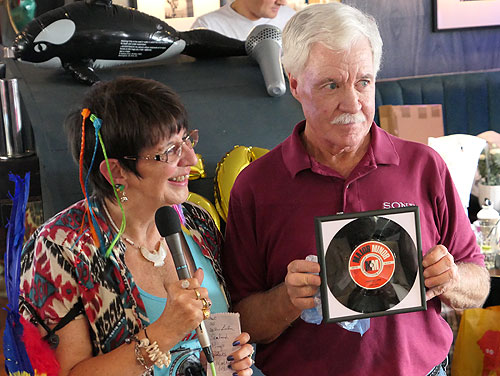 (Above) Howie was delighted to receive a special birthday present at Offshore 50 - a copy of 'Sentimental Songs' by Freddie 'Parrot Face' Davies - one of the least popular Major Minor releases that he was obliged to play while on Caroline. (Photo: Martin van der Ven)