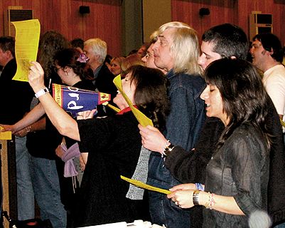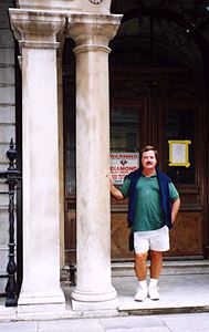 Photo: Mum and Dad at Abbey Road, Easter 2002. Says Ann: "Caroline's mummy is me the lady with the megaphone. Her daddy, Martin, is the one with ash blonde hair (or is it grey? Love is blind!) behind me." |