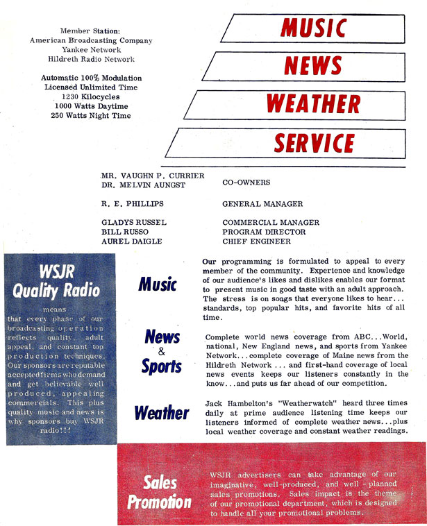 I managed to locate in my attic the advertiser handout that Rick put together. He lists me as Program Director and himself as 'General Manager'. It was a grandiose title indeed for a 1000 Watt station (at night, reduced to 250w) in a town of 5,000 people - most of whom spoke primarily French!