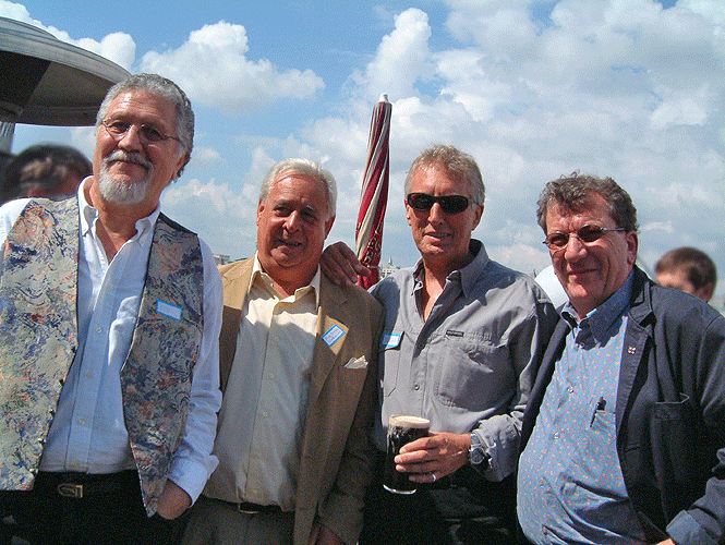 Doggett's Reunion, London 2002. With Caroliners (r to l Johnnie Walker, Mark Sloane and DLT. It was the 35th Anniversary of the MOA and many guests had not met since then. (Photo: Martin Van der Ven) |