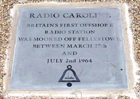 Caroline Pirates from the station's later era, will be making personal appearances in Felixstowe. Brian Nichol of the Felixstowe and Offshore Radio group reports: "Felixstowe Museum (View Point Rd, Felixstowe IP11 3TW) reopens for the 2024 season at 11am on Thursday 28th March, but at 12 noon there will be an 'official' opening by Radio Caroline presenter and author, Ray Clark, on the exact 60th anniversary of the launch of the station from the MV Caroline, anchored off Felixstowe. Ray will be joined in the opening by Felixstowe Mayor, Seamus Bennett. Ray will be staying for a couple of hours, meeting and greeting, and signing copies of his books, which include 'Radio Caroline - The True Story of the Boat That Rocked', before he leaves to give a talk about Caroline at the Electric Palace Theatre in Harwich at 5pm. Also hoping to come along are fellow current Caroline presenters Stephen 'Foz' Foster, Mark Dezzani and Terry Hughes, along with Dave Cragie & his Moggy Van vintage radio collection, which will be outside, along with ourselves selling some Radio Caroline merchandise, sales of which help to raise funds for their historic radio ship, the Ross Revenge. The Museum has invited 'Felixstowe & Offshore Radio' to expand their existing 1980's themed display, to now include a look back to when the ship arrived in 1964, with mostly local archive photos, material and memorabilia. We are also hoping to have a small gathering at the Radio Caroline commemorative stone at Wolsey Gardens Felixstowe IP11 2AF, meeting just before 6pm on Wednesday 27th March (60 years to the day from when the Fredericia anchored) before going to raise a glass nearby, probably at the Boardwalk on the Pier. Right Plaque photo courtesy of Brian Nichol |