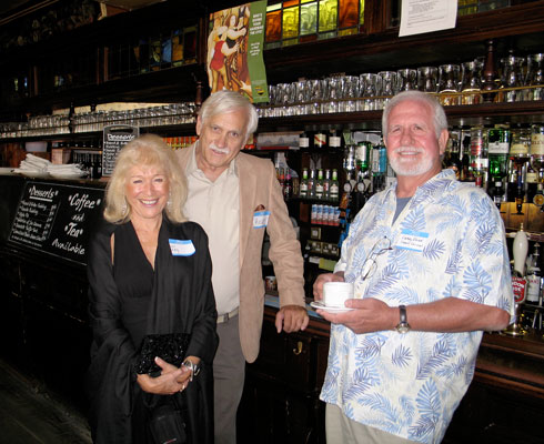 Rick Randell, his wife Joy and Larry Dean prop up the bar during Grey Pierson's Radio England/Britain Radio reunion, 2006 |