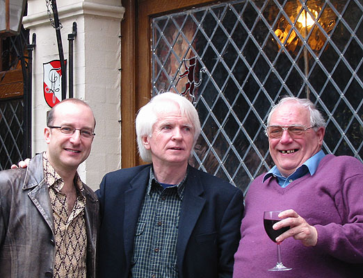 Paul McKenna, Ronan O'Rahilly and David Williams. Another of the ubiquitous red lions is behind Ronan's head. |