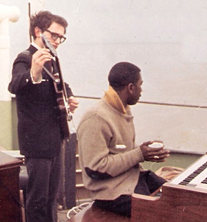 Caroline Birthday Bonanza To celebrate Radio Caroline's 49th birthday on March 28th, we have two Caroline specials from 1965. On May 5th, acclaimed organist Jimmy Smith made history when he played his Hammond organ live on the deck of the Mi Amigo, with Tony Crombie and Tony Thorpe. Alan Hardy of Radio West Mid (right) talks to Tony Thorpe about that historic occasion in a Radio London exclusive interview. Left: Tony Thorpe and Jimmy Smith, photo © Tony Thorpe The start of 1965 brings our first feature concerning artists in the Caroline chart. The Hummelflugs were the first band to be signed by Allan Crawford's agency and they released a single written by two of the DJs. |