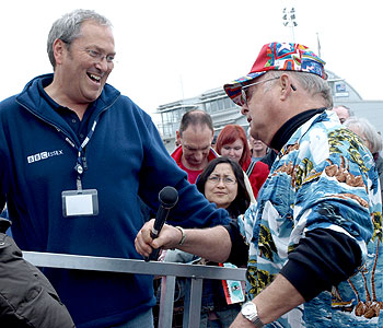 Hello, Darlings! Full Photo Report of Kenny Everett blue plaque unveiling and book launch Random House, the publishers of 'Hello Darlings' have launched a Kenny Everett website. It includes an amazing 87-minute collage of audio clips produced by our favourite DJ, including several from Radio London that were new to us. For anyone who still wants to hear the famous Knees Club anthem, both 'Knees' and 'The B Side' are there 'for your listening pleasure'. ***** Paul Rowley, below left, inteviewing Cleo Rocos for BBC radio news, writes: "Thank you so much for the wonderful pictures on your excellent website. You could well be my personal photographer! What a brilliant day it was. ***** The Pirate Radio Hall of Fame has added a photo gallery from the event. ***** Listen to James and Barry Cryer talking to Steve Wright on his Radio 2 afternoon programme. In Andy Walmsley's blogspot, he illustrates via audio clips how Kenny constructed a Radio One promo, when the station was still being referred to as '247'. (thanks to Jon Myer) Click here for 4-page photo report by Mary Payne of a wonderful occasion Taking over two years to write, and with the full support and co-operation of Kenny's family, 'Hello Darlings' is the first truly definitive account of Kenny's life and career and features contributions from his sister Cate, his ex-wife Lee, Sir Cliff Richard, Bryan Ferry, Chris Tarrant, Lord Birt, Germaine Greer, Paul Gambaccini, Barry Cryer, Rod Argent, David Mallet, Matthew Parris and David Essex. The authors have undertaken painstaking research and Radio London assisted them with audio clips and information about Kenny's time aboard the Galaxy. We have also put them in touch with key figures from that period such as Ben Toney and Philip Birch. This is a list of interviewees, published by James Hogg on Facebook: Cate Horgan (Kenny's sister), Lee Everett-Aikin (Kenny's ex-wife) Sir Cliff Richard, Hunter Davies, Leo Sayer, Ron O'Quinn (Kenny's roommate on the 1966 Beatles tour), Germaine Greer, Brian Cosgrove (Cosgrove Hall), Bruce Gowers (Kenny's director at LWT), Emperor Rosko, David Hamilton, Jonathan King, Julian Lloyd Webber, Ollie Lansley (portrayed Kenny in last year's biopic), Bill Wilson (Kenny's director at the BBC), Mike Quinn (colleague at Radio London), Mike Batt, Rod Argent (The Zombies), Noel Blanc (Mel Blanc's son), Tony Blackburn, Johnnie Walker, Lord Birt, Rupert Hine (Quantum Jump), Royston Mayoh (Kenny's last director at Thames), Chris Rainbow, Peter Hince (Freddie Mercury and John Deacon's roadie), Tim Blackmore (producer at Radio 1 and Capital), Wayne Bickerton (produced Kenny's first single), Matthew Parris (presenter), Peter Brown (Kenny's first boyfriend), John Aikin, Jess Conrad, Simon Booker (Friend and producer), Mark Lewisohn (Beatles Expert), Chris Tarrant, Bryan Ferry, David Mallet (Director at Thames), Barry Cryer, Lionel Blair, Kevin Howlett (Radio 1 producer), Jenny Hanley, Clive Warner (Engineer at Capital), Dave Symonds (Colleague at Radio 1, Capital and Capital Gold), Pete Drummond (colleague at Radio 1), Paul Gambaccini, Jim Moir (former Head of Variety at the BBC), Jo Gurnett (Kenny's long-time manager), David Essex, Sheila Staefel, Paul Burnett, Nicky Horne, Mike Vickers, Peter Young, Mitch Philstin (Steward on Radio London), Geoff Mullin (Kenny's producer at Radio 2), Russ Evans (Kenny's studio assistant at Capital Gold), David Jensen, Andy Peebles, Johnny Beerling (former controller of Radio 1), Richard Park (Kenny's boss at Capital Gold), Annie O'Neil (Kenny's producer at Capital), Kara Noble, Dave Hawkins (Big L engineer), Ben Toney (Programme Director, Radio London), Philip Birch (CEO Radio London), Dave Cash, Eric Gear (Kenny's Bank Manager and friend), Maurice Seller (Discovered Kenny), Wilfred De'Ath (BBC Producer), David Smith (former boyfriend), Paul Walker (school friend), David Briggs (Capital Producer), Richard Porter (Beatles expert). James has also posted a link on Facebook to a montage of images and clips put together by Tony Kennedy, who attended Stillington Seminary with Kenny in the late 1950s. Tony has provided some superb photos for the book. (Thanks to Jon Myer). |