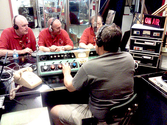 | The Mother Road Tour Paul Peters and Geoff Kemp who co-host the Fabulous Fifties Radio Show on Forest FM, linked with WRLR of Illinois and got their kicks on Route 66. Paul writes: "Our Route 66 radio tour was fantastic! Here is the link to an article about us in the Radio World Magazine in the U.S. Also, Dave Cash called us to ask if we'd be guests on his Saturday BBC across-the-south show. Poor Dave, he could not get a word in!" Photos courtesy of Paul and Geoff Below, left: Paul talks to a young lady from the Palms Grill, Atlanta, the last major stop; right, Geoff, WRLR Morning Drive host, Paul Lepek (right) and guest |