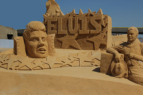 Wot, no Sandie Shaw? Right: Fab Forty artists Elvis and Frank Sinatra |