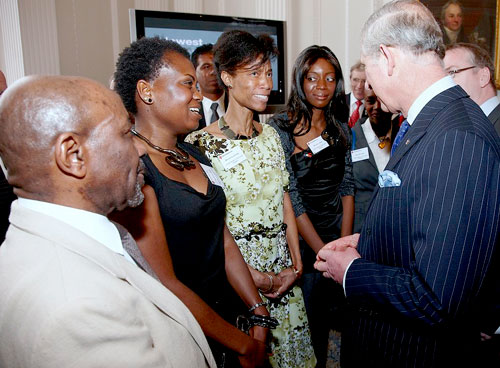 The Prince and the Steward "One of UHUK's remits is educating the United Kingdom on Haitian facts, information and sharing our culture. We do this in a variety of methods from attending schools, churches, community centres and other venues with slide shows and interactive presentations." In this picture from the charity website, Mich is shown meeting Prince Charles. |