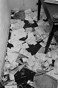 Hans Knot tells us he has recently acquired 1250 high quality, unpublished photos taken by Menno Dekker to add to the ever-growing archive. Menno took many photos on both Caroline ships and one of them shows fan mail, newspaper clippings and other debris strewn over the floor. Hans says, "Our layout man has done some work on the photo and the result can be seen in the close-up segment of the picture."