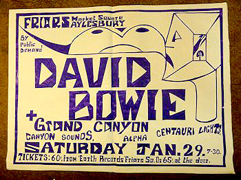 'The local music club that rocked the world' was an exhibition of memorabilia from the famous club, at Buckinghamshire County Museum, Church Street, Aylesbury. One of the exhibits was a torn piece of a jacket worn at Friars by David Bowie. Its owner is interviewed at the museum in this news clip.