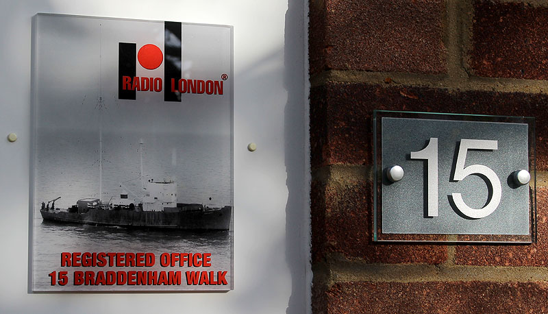 Our wall plaque marking the registered offices of Radio London (a legal requirement for limited companies) had become somewhat dilapidated, so we have created this eye-catching special replacement. |