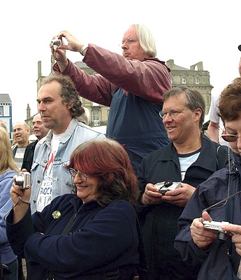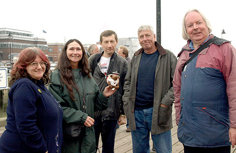 (Right) On the Ha'penny Pier with Knees Club Official Pauline Miller, Cousin Moosie, Peter Herring, Dave Miller and John Sales