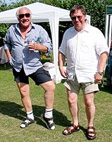 | Each summer, Roger and Fran Cooper, and Colin and Jacky Pattenden hold a picnic for anyone who wants to go. You can bring anyone you like they don't have to be known to the others. It's a great idea, and this year's saw us at Runnymede near Windsor, on a very hot August afternoon. (You can also see the organisers participating in the 2001 RSL, here.) You'll be wondering about the pig... It shows the location of the picnic for arriving participants! (Read more about the picnic on Roger and Fran's website, here.) | |