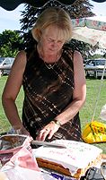 Fran cuts the celebratory cake |