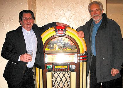 Thursday, November 26th, saw two major events in Harwich a visit by HM the Queen with the Duke of Edinburgh, and the launch of the DVD 'Pirates Waive the Rules'! During the morning, the historic Electric Palace cinema was visited by HM and in the afternoon, it was the venue for the press launch of the new DVD. 'Pirates Waive the Rules' is footage taken during the award-winning Pirate BBC Essex broadcast, much of it shot for BBC TV. The Beeb permitted the material to be released on DVD in aid of the Pharos Trust charity, headed by local man Tony O'Neil, which is restoring the vessel used for the Easter broadcast. LV18. As one of the last manned Trinity House lightships, it is destined to become a floating museum. Highlights of 'Pirates Waive the Rules' include the live broadcast by BBC Look East, a tour of the mess, galley and cabins, listeners communicating with the ship by flashing car headlights (it's great to witness what this looked like from the ship!) and hilarious pranks played on Keith Skues. Events culminate in the overwhelming welcome from crowds lining the Ha'penny Pier for the DJs, when they came ashore for the final time. The launch of the DVD was covered by BBC Essex and supported by two of the celebrity participants in the Easter broadcast original Big L jocks, Dave Cash and Duncan Johnson (above). Dave, who narrated 'Pirates Waive the Rules', introduced it to the Electric Palace audience. Keith Skues was unable to attend due to illness. The DVD is available from the LV18 website Our Pirate BBC Essex coverage and photos are here. Pirate BBC Essex website here. |