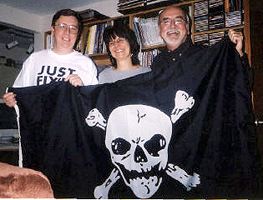 The Anorak Shopping List Paul and Mark de Haan have updated their Marine Broadcasters site with a great 'Anorak Fantasy'. The feature offers a shopping list of items and equipment required for running a proper radio station and an escape from 'liner card hell' including a studio containing portholes! (left) Chris, Mary and Caroline's Steve Young have a suggestion for another item that Paul might care to add to the list. |