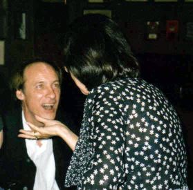 Mix... Heather Goddard, Keith's Production Assistant at BBC Eastern Counties, reads a poem on the 'Skuesvibe' track. Left: Heather and Kevin with 'Mr Tambourine Man on Ecstasy' (Publicity