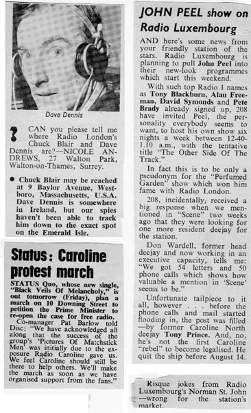 In fact I'm pretty sure that Peel did feature on Lux - but in 1971, not 1968. The programme was called "Stenhousemuir 2, Cowdenbeath 2" (or some similar score involving those two stalwarts of Scottish football's lower divisions) and he mentions it briefly in his autobiography, claiming that he was the only DJ to appear on BBC and Lux at the same time (really? what about Brian Matthew? But JP was in the US for the first half of the 60s so he wouldn't know).