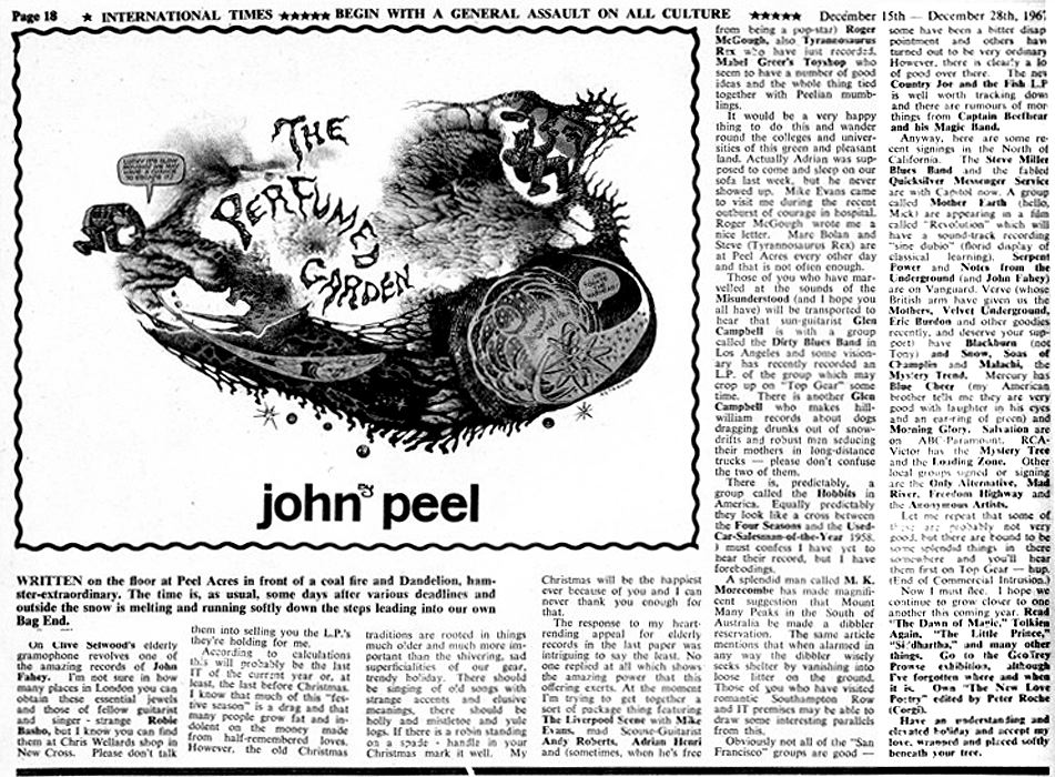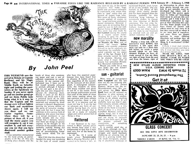 who says: "Peelie had his own column in the underground mag International Times. I'm lucky to have all the issues of this sometimes-irregularly-appearing publication." (click on pictures to read larger versions) |