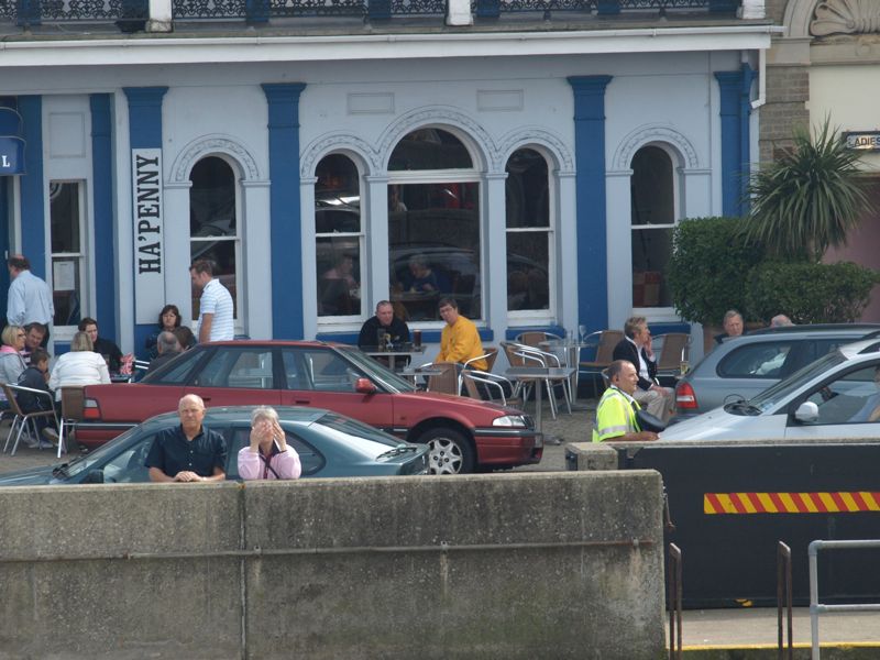 Chris and Ray Reynolds are enjoying a quiet drink outside The Pier