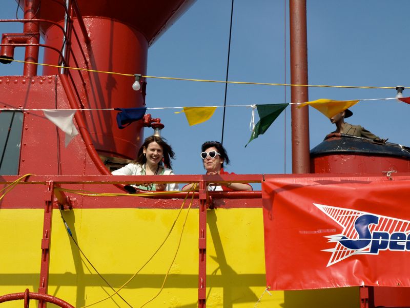 Kimberley Peters on deck with EmilyKimberley is studying for a PhD in Offshore Radio