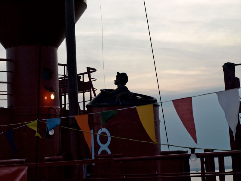 The familiar silhouette of Daphne. As she is, sadly, legless since the 2007 broadcast, she has asked to be propped up in the funnel so she can follow the action.