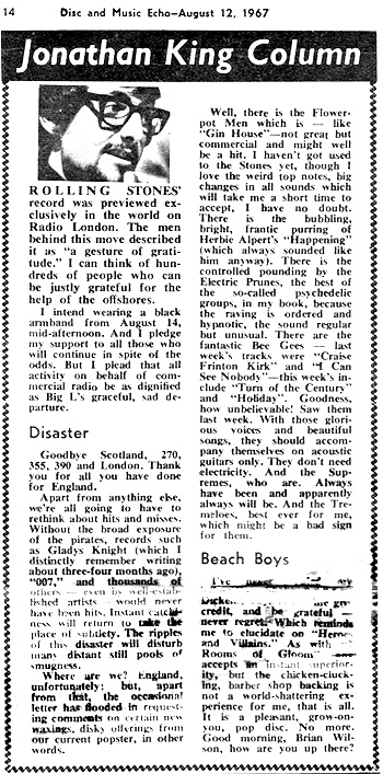 in Disc and Music Echo, Jonathan King (left) reminds readers