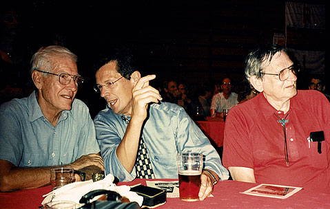 (Left) Ben in the galley of the Yeoman Rose Ben was aged 33 and working at WTAW Radio, Bryan-College Station, Texas, in August 1964 when Don Pierson phoned, saying that he wanted him to go to England on an 18-month contract to set up a new offshore radio station. Don, a man who favoured swift action, gave Ben only one day to make his decision. Ben was swayed by the fact that he was being chosen to put a station on the air with five times the power of rival Radio Caroline, which was newly merged with Radio Atlanta and operating from two ships covering the best part of the north and south of the UK. Bill Watkins, his boss at WTAW, fortunately appreciated that this was an opportunity that Ben could not afford to pass up. The decision to work for Don Pierson was one that was to change Ben's life in unprecedented ways. It was an adventure that brought him two very special people, a wife, Ronagh, and a daughter, Raquel along the way. Initially, Ben had to fight both Don Pierson and Radlon MD Philip Birch and his British management team, in order to set up a Top Forty station with a significantly different sound to attract big UK audiences. Both Don and Philip had their own ideas about how the station should sound, but Ben was a man who knew about radio. He was introducing something innovative to an audience unfamiliar with jingles, commercials and fast-paced delivery and he was well aware that he had to find the right way to do it. Top Forty radio had passed its heyday in the USA, but for us, it was just beginning. Ben set about finding the right DJs and building The London Sound. He was changing British radio for ever. In 2009, Ben mailed me a copy of typed memoirs that he had written mainly for the benefit of his family, asking me to be truthful about the prospects of their being suitable for publication. I found that while there were many stories that would be fascinating to our site visitors, there was not enough material to interest the general public and tempt a publisher. After I gave Ben my honest opinion, he agreed that I should edit the memoirs and publish the appropriate parts on the Radio London site in instalments. This proved to be a marathon task, as there was no computer file; the only thing available for me to work from was the finished, printed document. How was I going to edit the memoirs without retyping the whole thing? The only answer was OCR - optical character recognition. This was a somewhat old fashioned method of scanning the existing pages and allowing the computer to turn the contents into an editable text file. It was very time-consuming and painstaking work, but some of the results that the machine came up with proved hilarious! A reference to an encounter with Sir Joseph Lockwood, head of EMI came out as, "there was also Sir Joseph Locoweed, managing director of EMI. I aquaplaned him." There was also the revelation that "Don Person brought the Radio Highland/Britain Radio ship into the UK". Once having editable text files, my task was to polish Ben's fascinating tale of his Radio London career without altering his account, but fleshing out certain aspects of the I was proud of the finished result and was delighted when Ben called my work 'outstanding', but I was even prouder when Ben came to the UK to attend the surprise 60th Birthday Party that Chris arranged for me. Having a strong Radio London connection and a party with Ben, Duncan Johnson, Mitch, Ian Damon and Ron Buninga as VIP Guests for my 60th birthday, was something I could never have envisioned as a youngster. (Right) Ben chatting to one of his 1965 DJ recruits, Duncan Johnson Radio London was a short episode in Ben's long and productive life, but he saw it as one of the most significant parts. Ben was not sufficiently well to travel to our Offshore 50 reunion in August 2017, but he sent a lovely message to be read out to our guests. I was very touched that when he went into hospice care, Ben took the trouble to ask his niece Cheryl to inform me. I felt honoured that he should think about me at such a time and it gave me the opportunity to send him a message telling him how much he was loved and appreciated. His daughter Raquel was by his side during his final days and read out many such messages to him. Smooth sailing, Ben. We shall never forget you. Mary ************** Mark Roman's TributeBen Toney has left us and we mourn his passing. Each of us has reason to be grateful for his contribution to our lives. (Right) Mark on stage as MC at the 1997 Summer of Love party, with (l to r) Keith Skues, Ben, Dave Cash, behind Dave, Duncan Johnson, Tommy Vance, David Hawkins, Tom Danaher, Ian Damon Mark ************** Michel Philistin, Ship's Steward 1964 – 67Ben, you were very kind and helpful, especially with me.