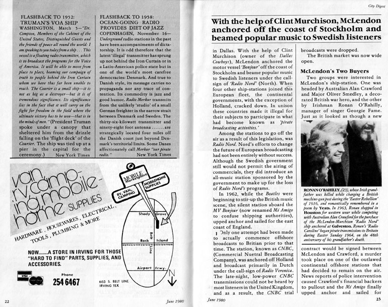 Grey Pierson, the Executive Editor of Irving City Digest, has kindly allowed us to reproduce this feature by Conrad Westinghouse, from the June 1980 edition of the magazine,