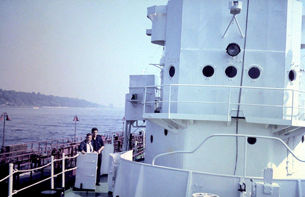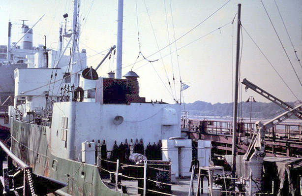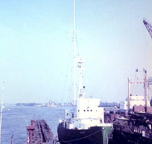 This collection of photos, kindly scanned by Ron and his friend Ton, includes some we have not previously seen and others which are better versions of ones we had received previously. They show the Galaxy during her 'green period', which was during the early years of her stay in Hamburg, when she still looked quite a smart vessel. |