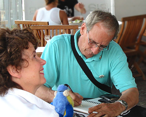Lorne signs in for the 2004 First North American Offshore Reunion (the lady on the left is Steve Young's wife Trish). All the attendees with the exception of myself and Kenny Tosh, were broadcasters from the radio ships off the coasts of the UK during the 1960s. |