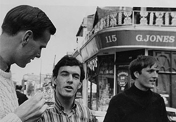 (Left) The friends pose for a typical Sixties-style photo, at The Chelsea Potter Russ had learned his trade on the Pirate Station Radio London, by far the best of the Pirates, and he had been responsible for switching off the station at the close-down on the 14th August 1967. Following the closure of Radio London by the Government, Russ went on to work as an engineer for London's new commercial station, Capital. It was here that he met Dave Symonds – who had just been appointed Programme Controller at Radio Victory the new ILR Station in Portsmouth. Dave invited Russ to join Victory as Head Engineer for its launch on October 14th 1975. Dave Symonds had assembled an impressive team, including Dave Christian, the top DJ at Radio Luxembourg, Sarah Ward, Roger Scott and Kenny Everett from Capital, Eugene Fraser from Radio 2 and Andy Ferris from Radio 1. |