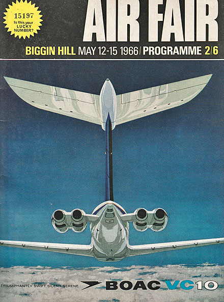 The official programme, as depicted, was purchased originally by 18-year-old Roger P Smith of Coventry, who partially completed the 1966 Air Fair Competition form enclosed in it, but found himself unable to answer all the questions. First prize was two return flights to Paris.