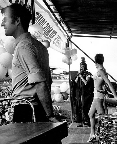 The live acts performed from on top of the trackside control box. Hutch recalls seeing Tom Jones's backing band the Squires, doing a sound check. He thought their singer was 'looking a bit of a prat' with a white bow in his hair, which was probably a management decision to try and cash in on Albert Finney's hairstyle in his 'Tom Jones' film.