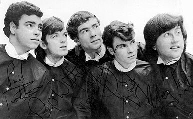 The Sorrows was the first group to join the Knees Club on January 7th 1966. (l to r) Phil Packham (bass; KC member #8), Pip Whitcher (lead; #7), Don Maughn (vocals; #9), Bruce Finley (drums; #5) and Wez Price (rhythm; #6). Note Beatlesque jackets! Mary reciprocated by joining the band's fan club, known as The Sorrows Rave Set, run by Carol Oliver of Hornchurch. At the time, the fan club had slightly more members than the Knees Club. Mary was Rave Set member #12. The Sorrows' weeping guitarist