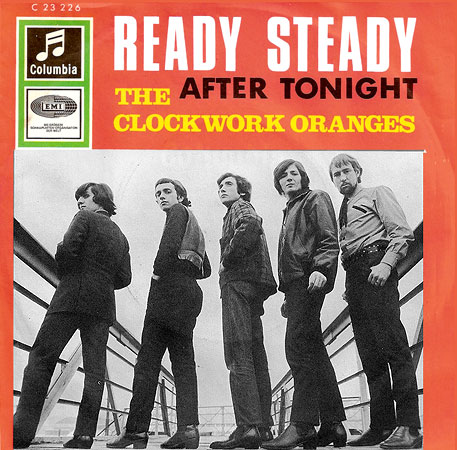 "The facts as I understood them are that the Clockwork Oranges were formed in Great Britain and issued the single Ready Steady/After Tonight on Ember S 227. It was subsequently made available in the USA (Liberty 55.887) and in Germany with a picture sleeve (Columbia 23.226). Now this picture is depicting a different group, which some wise Italian fan recognized as being an early shot of the then newly-formed I Pooh. I suppose one way or another, this is the origin of the rumour. Furthermore, I also found reference to a Greek copy of the Clockwork Oranges single, labelled as 'The Clock Work Oranges', but with the picture sleeve showing a completely different group!