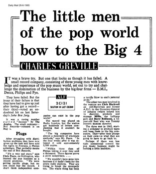 Whether or not being with Fontana resulted in improved distribution, is debatable. The Spencer Davis Group''s single Strong Love was released on the same label around this time and a month later, prompted TW to air further listener complaints about the unavailability of both singles! However, the transfer to the Spencer Davis Group's label, Fontana, presumably explains how Incense ended up erroneously on the Anglos' stablemate's singles compilation. Charles Greville wrote a feature about the single and its distribution failure that appeared in the Daily Mail of June 28th 1965. (Thanks to Hans Knot for the scan. Click on the picture to read it.) As to the mystery vocalist, after he aired the single during his Soul Cellar show, the late DJ Peter Young received a phone call from Jimmy Miller. Jimmy (who died in 1994) told PY that he had sung the lead on Incense. Chris Blackwell maintains that he heard the single while in the States and was so impressed that he brought the young Jimmy Miller (b 1942 in New York) to work in the UK on the strength of it. All UK releases of the Anglos' Incense credit Miller as the song's co-writer and vocalist. Miller worked with the Spencer Davis Group and went on to produce many top bands, including the Stones. His productions include Beggars' Banquet and Let it Bleed. Jimmy Miller was married to Gayle Shepherd, lead singer on the 1957 Top Twenty US single by the Shepherd Sisters, Alone. Their daughter, Deena, is also a singer and has her own website, where she shares family photos and biographies of her late mother and father. In 2023, Mike Barraclough of the Radio London Facebook Page came across an interesting cutting from July 9 1965, where the 'Teen Beat' column in the Pontypridd and Llantrisant Observer names the Anglos as a collection of New York session men and the singer of Incense as American 'Jimmy' Webster. After further research, Mike found comments on the 45cat page devoted to Since You've Been Gone, a 1967 release by The Anglos, a group from Virginia. Since You've Been Gone credits vocalist Joe Webster as co-writer. The YouTube video linked to the track reveals (not surprisingly, considering the sound) that the track was a Northern Soul success and features on the CD compilation Best of Northern Soul, Vol 1. 'Incense' is to be found amongst the 25 gems on The Soul of Sue, Vol 2, although there is no obvious connection to the Sue label. In a blog posted in 2009, DJ Lord Thomas, confirms the Anglos' line-up as lead singer Joe Webster aka Little Daddy and names the other members as Big Rob, Eugene and Baby. Shiptown Records founded in Norfolk, Virginia, was regarded as Norfolk's Motown. Lord Thomas says that the label was "one of very few black record companies in the Sixties and Seventies to be booked in white clubs and on all-white concerts." A linked YouTube video of Since You've Been Gone attracted comments (posted circa 2020) by one of Webster's (unnamed) offspring, naming their father as Joe Louis Webster Sr. The post does not state if he was known as Jimmy. "I don't know much about the Anglos as my father, Joe Louis Webster Sr., rarely talked about it. The group started in Norfolk, Virginia and other band members were George Wilson, Eugene Cary and Robert Taylor. My father has always lived in the Hampton Roads area of Virginia which is a district of 7 cities: Norfolk, Virginia Beach, Hampton, Chesapeake, Portsmouth, Newport News and Suffolk. I do know the Anglos recorded another song called 'Incense'. My father says he doesn't remember much about Jimmy Miller." "He also sang with Ida Sands (Little Ida) as the Soul Duo. Their best record was Just A Sad Christmas (1968), with Can't Nobody Love Me (Like My Baby Do) on the B-side." During his research, Mike Barraclough found a 2022 Discogs compilation of records released on the Shiptown label. It provides more information, but is incomplete, although it does list records by Ira Sands and the Soul Duo record mentioned above. (Photo: Joe and Ida as Soul Duo, credit Discogs) One of the Shiptown label's best-known singers was 'General' Norman Johnson, who achieved hits in the Seventies as the vocalist with Chairmen of the Board. Mike also found a post from 2012 that reveals more about Shiptown. It seems that original recordings on the label would be very hard to come by, as pressings were made only in limited runs. Incense was recorded by Owen Gray (see Fab 7th March 65) as an Island B-side in 1967, and the Anglos' version of the song was reissued on the label. An undated press release from Vivien Holgate on behalf of Island Records is posted on the 45cat page devoted to the Anglos as a UK group. It claims that the mystery of the recording artist 'has been solved after four years'. This indicates that Island reissued the single in May 1969. Vivien Holgate credits Jimmy Miller as both co-writer of Incense and as its mystery vocalist. Two tracks by the Anglos, Broke Down Piece of Man/ Four Walls of Gloom, were unearthed and released on limited edition vinyl in 2018 by the Spanish label Soul 4 Real. (Now posted on YouTube). Discogs lists these Anglos tracks and cross references the group with the names The Rockmasters, Linda Martell and Francois and the Anglos. Joe Webster is not mentioned. Mike concluded: "The involvement of Jimmy Miller would seem to me to be that he heard the record and promoted it in the UK, but failed to arrange adequate distribution when it was released here." Why Miller always maintained that he was the Anglos' vocalist and co-wrote Incense, with those claims backed up by Island Records, we may never know. It does seem clear now that the real vocalist was most likely to have been Joe Webster. However, it appears from the Discogs listing that there were several incarnations of the Anglos, so it is impossible to reach a definitive conclusion regarding the singer's identity.. Incidentally, the group's name is pronounced 'Ang-lows' and not 'Ang-gloss', as I heard a DJ (who shall re