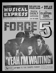 Force Fivewere from Canvey Island and their lead guitarist Bert Pulham penned Yeah, I'm Waiting and co-wrote the B-side, I Don't Want to See You Again. The other four members were Ron Gent (vcls), who co-wrote their next single I Want you Babe, Pete Gosling (gtr), Dave Osbourne,(bs) and David Skates (drms). They later evolved into the magnificently-named Crocheted Doughnut Ring. A full-page advert on the May 14th front cover of NME failed to produce a hit. |