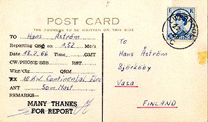 So if one extrapolates the percentage from my village, 15 kids out of 450 people, makes 3.3%. Apply it to the whole Swedish-speaking minority, 300 000 people, and we will find some 10000 listeners. If we cut the percentages down to 0.5 % amongst the Finnish-speaking majority (because of less skills in English and living inland, with poorer receiving conditions) we will have some 20000 listeners more. That makes a sum of 30000 regular listeners in Finland!![]() |