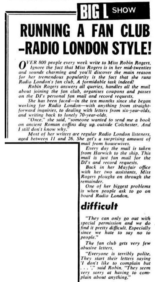 Mike continues, "The June 4 edition of Melody Maker, which ran the Tiles advert, also has a news item about Radio London announcing the return of Kenny Everett 'after a spell at Radio Luxembourg,' as well as Tony Blackburn joining Big L from Radio Caroline. There's no mention of Kenny on the Tiles advert for that week, the Ready Steady Radio show being presented by 'Top DJs'.