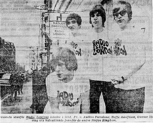 Håkan Widenstedt in Sweden Hello Chris and Mary, "I was reading about the Mascots on one of your Mini-memory pages. They were one of the leading bands in Sweden during the 1960s. I got interested after reading about them on your page, so I wrote to Anders Forslund, one of the band members. He is still part of the music scene in Sweden. Here is his answer about their visit to Radio London: 'The Mascots made a so-called package tour together with the Bluesbreakers with Peter Green. Should be around 1967. On that tour was also Earl Richmond, one of the Big L disc jockeys. Later he made us a fantastic strong meat stew in the home of our manager at the time, Lars Dalenius in Sollentuna [Stockholm]. Mascot visited also on one occasion the radio ship in the North Sea. I remember that we were given cigarettes, a whole carton of cigarettes, each one of us and we sat in the stern of the ship and each of us took a drag on a cigarette and then we threw the cigarette into the sea. That's how "Free" we were :) !' It is possible that Stefan Ringbom remembers more. He is on the web." Webmaster's note: Earl Richmond's involvement with the tour explains how the two Radio London visits were arranged. Earl had left the Galaxy in 1966, but continued to be associated with Big L and the station's School of Broadcasting. We do know that the band appeared at a Big L Night at the Nautilus Club, Lowestoft on March 25th '67, hosted by John Edward. alongside Three Good Reasons and The High Tees. Three Good Reasons had been in the Fab Forty twice in 1966, the first time vying with the Settlers for a hit with their cover of 'Nowhere Man'. See a clip of the Mascots performing their 1965 release 'Sad Boy', and looking far more Beatlesque than they do in the Curzon Street photos. An English translation of the history of the Mascots, 'the boys who played pop music in the evenings and studied Beethoven and Bach during the day' is here. It reveals how they felt when they played support to their heroes, The Beatles. Anders Forslund has his own website here |