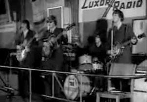 This shot of the Mascots with the 'Save the Pirates' caption was in the second edition of Beatwave magazine. Although different from the newspaper clipping sent by Per Alarud, it is obviously one of a series of photos taken that day. The picture appears in Beatwave with nothing to indicate the band's name, or the fact that they were from Sweden which gives the impression that the editor had no idea who these guys were, but liked the photo and decided to use it anyway! |