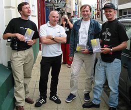 What a unique opportunity to take a picture of four Radio London originals!John Edward, Ian Damon, Willy Walker, and kneeling, Keith Skues.Click on the picture for a bigger version you can put on your bedroom wall, or wherever you like really...Our thanks to everyone for making it such a memorable gathering! |