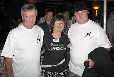 Tony Blackburn and Norm St John with Mary Payne wearing a Radio London special